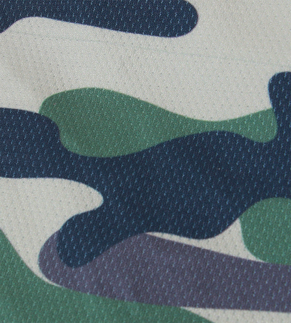 這款男士比基尼採用時尚的迷彩圖案、罩杯上的數字以及霓虹色的標誌,外觀引人注目。